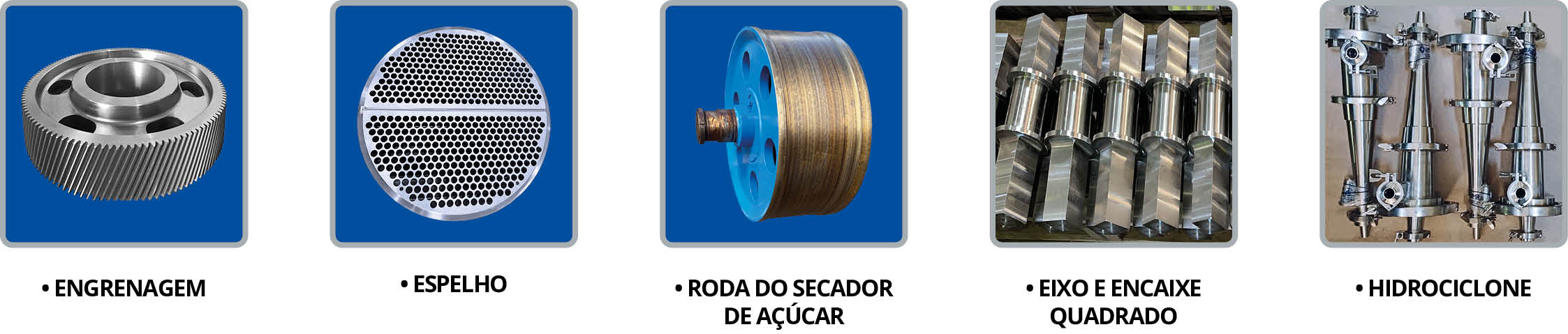 Veja detalhes do nosso maquinário e confira nosso portfólio de peças, como engrenagens, hidrociclones e espelhos.